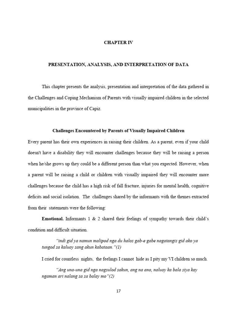 the Challenges and Coping Mechanism of Parents with visually impaired children in the selected