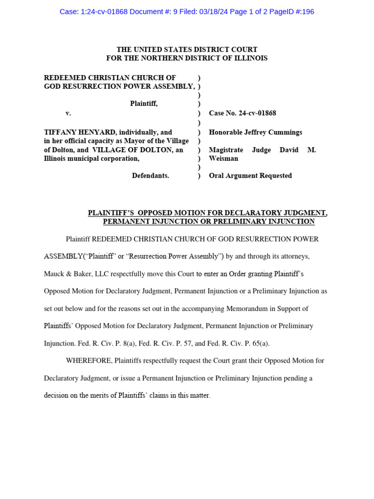 Opposed Motion for Declaratory Judgment, Permanent Injunction or a Preliminary Injunction as