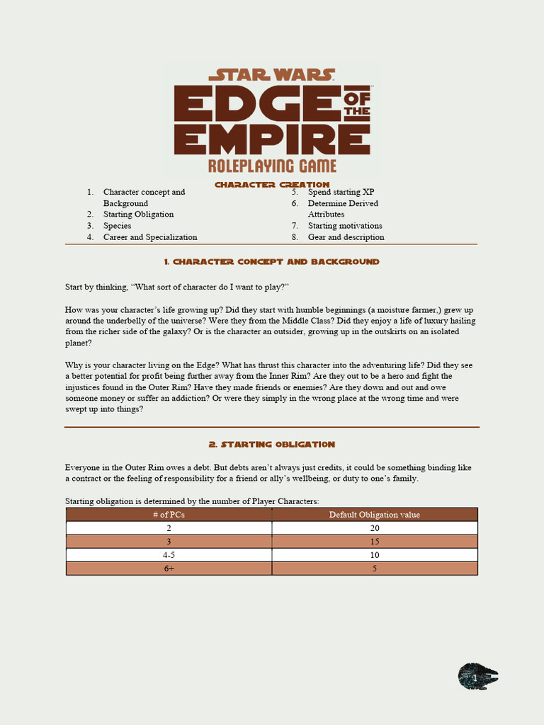 their Obligation choice that they have to spend to purchase their initial set of gear. While there is a wealth of