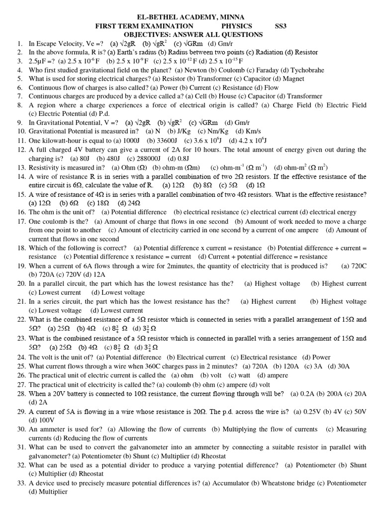 OBJECTIVES: ANSWER ALL QUESTIONS