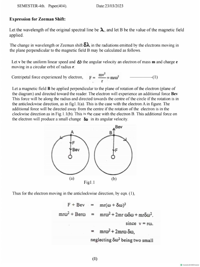Thus for the electron moving in the anticlockwise direction, by eqn. (1),