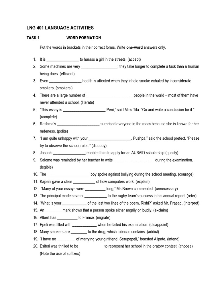 Put the words in brackets in their correct forms. Write one-word answers only.