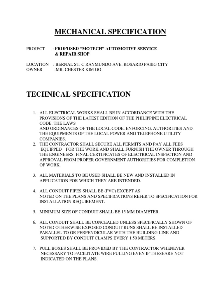 PROJECT : PROPOSED “MOTECH” AUTOMOTIVE SERVICE