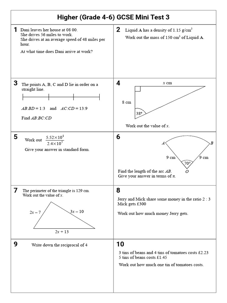 Higher (Grade 4-6) GCSE Mini Test 3