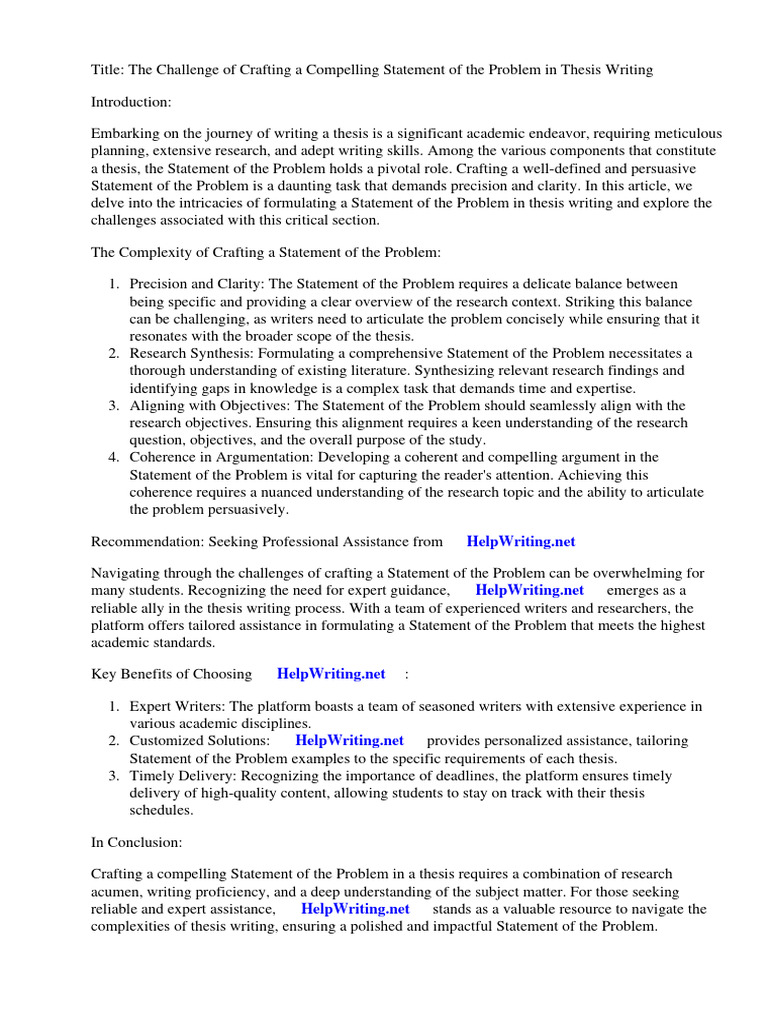 complexities of thesis writing, ensuring a polished and impactful Statement of the Problem.