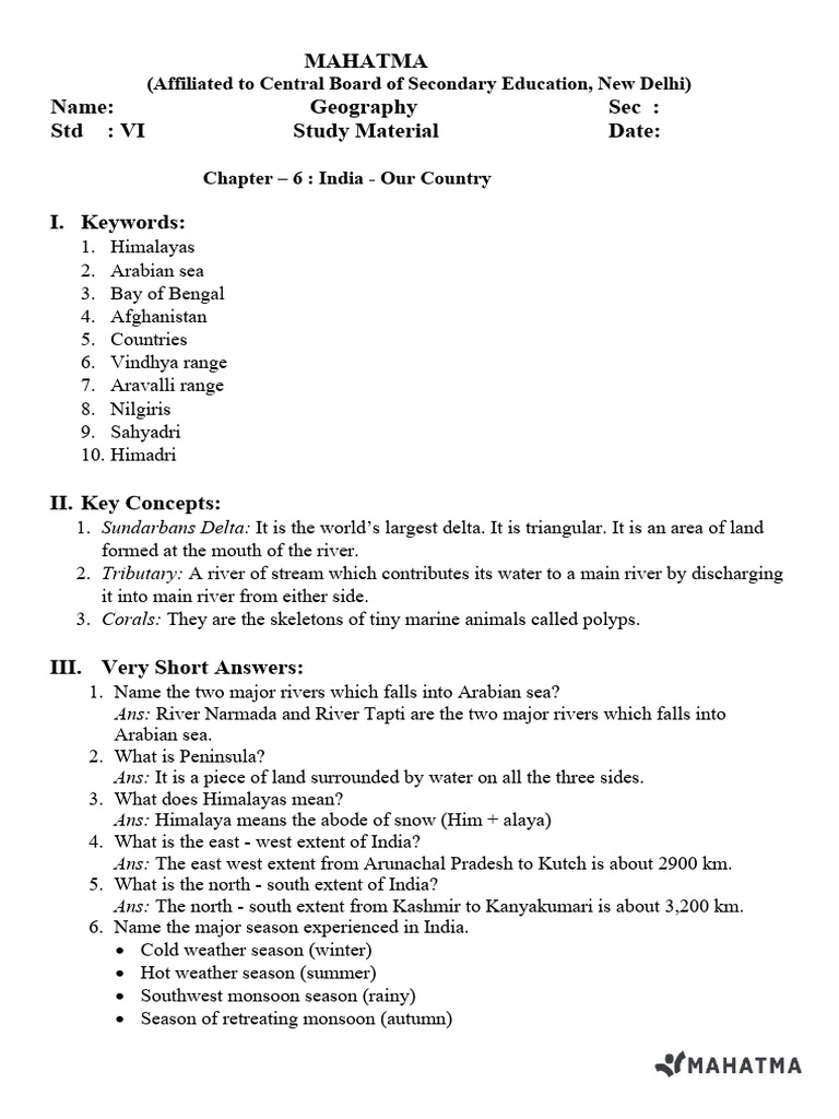Ans: Our country has a vast geographical expanse. In the north, it is bound by the