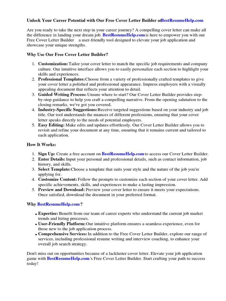 Unlock Your Career Potential with Our Free Cover Letter Builder atBestResumeHelp.