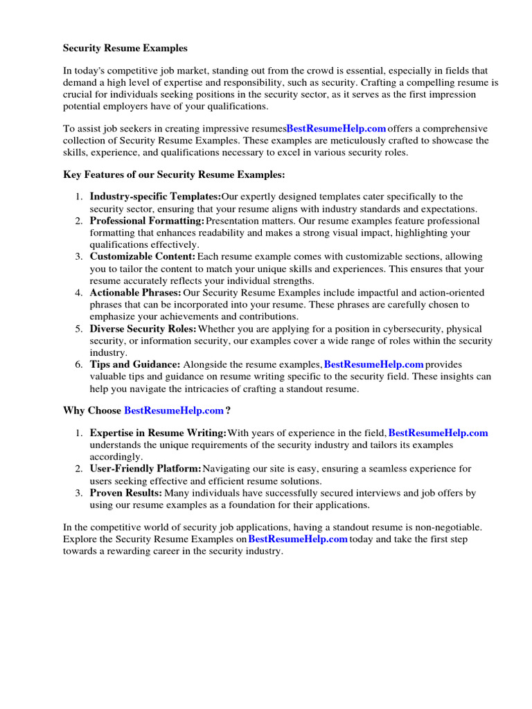 collection of Security Resume Examples. These examples are meticulously crafted to showcase the