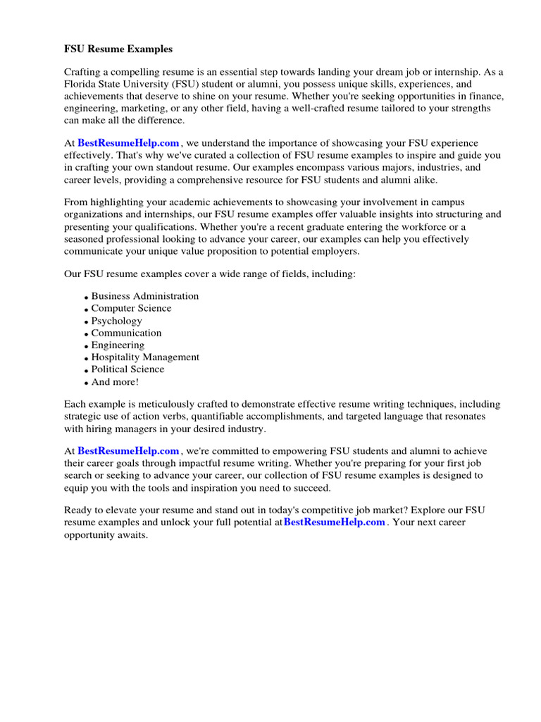 search or seeking to advance your career, our collection of FSU resume examples is designed to