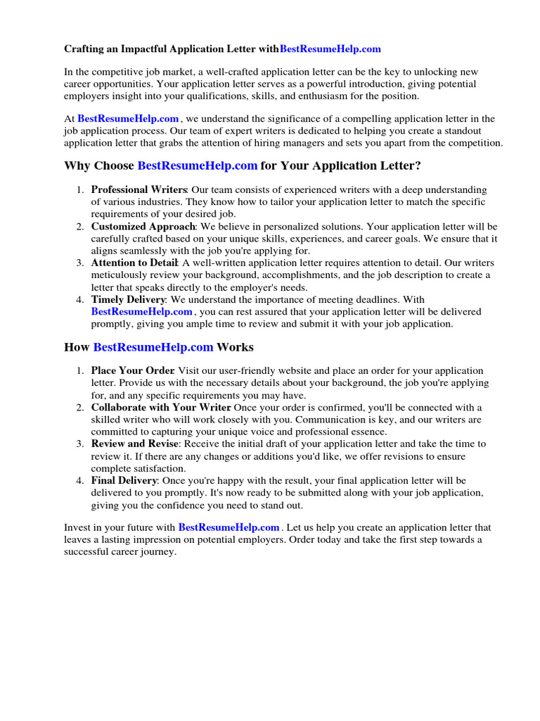 At BestResumeHelp.com , we understand the significance of a compelling application letter in the