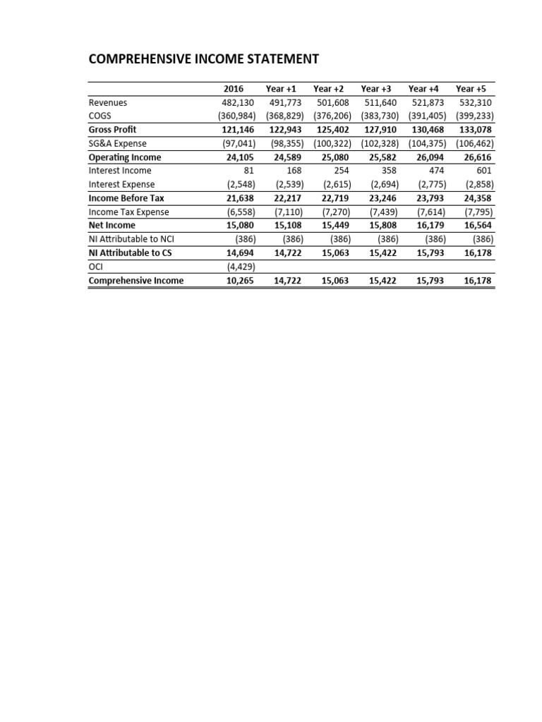 COMPREHENSIVE INCOME STATEMENT