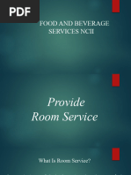 Room Service is the service of any Food & Beverage items ordered by the guest directly to his/ her