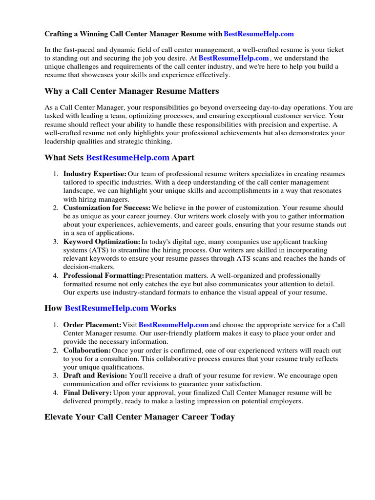 Crafting a Winning Call Center Manager Resume with BestResumeHelp.