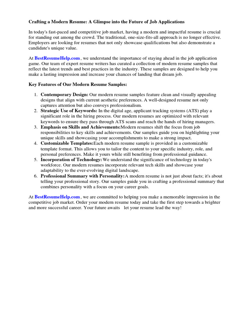 expert guides. Modern resumes are an ideal choice for those seeking work in a modern workplace.