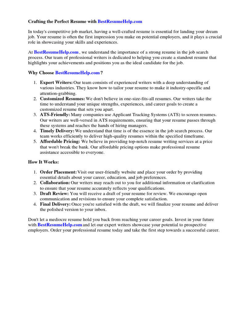 with BestResumeHelp.com and let our expert writers showcase your potential to prospective