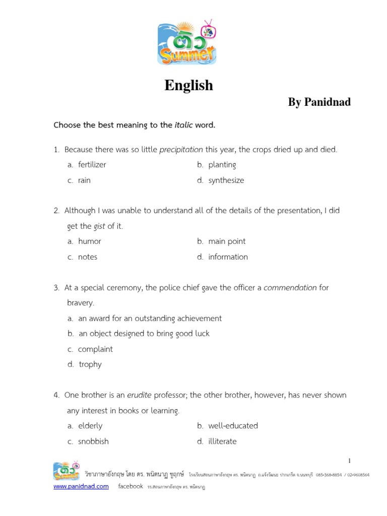 วิชาภาษาอังกฤษ โดย ดร. พนิตนาฏ ชูฤกษ์ โรงเรียนสอนภาษาอังกฤษ ดร. พนิตนาฏ ถ.แจ้งวัฒนะ ปากเกร็ด จ.นนทบุรี 085-368-8854 / 02-9608564