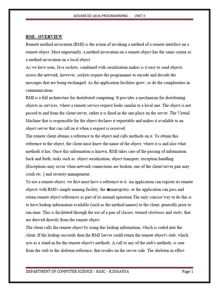 ADVANCED JAVA PROGRAMMING - UNIT II