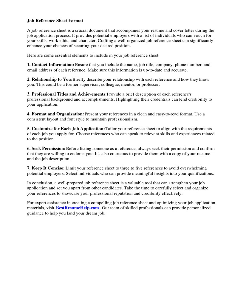 In conclusion, a well-prepared job reference sheet is a valuable tool that can strengthen your job