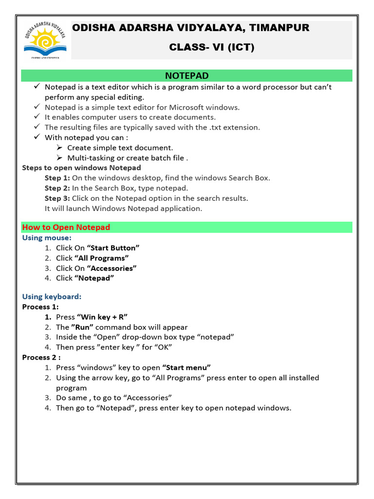 Notepad is a text editor which is a program similar to a word processor but can’t