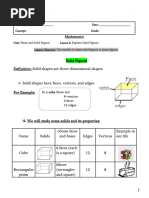 group will identify the name of the solid figure, the number of faces, edges, and vertexes.