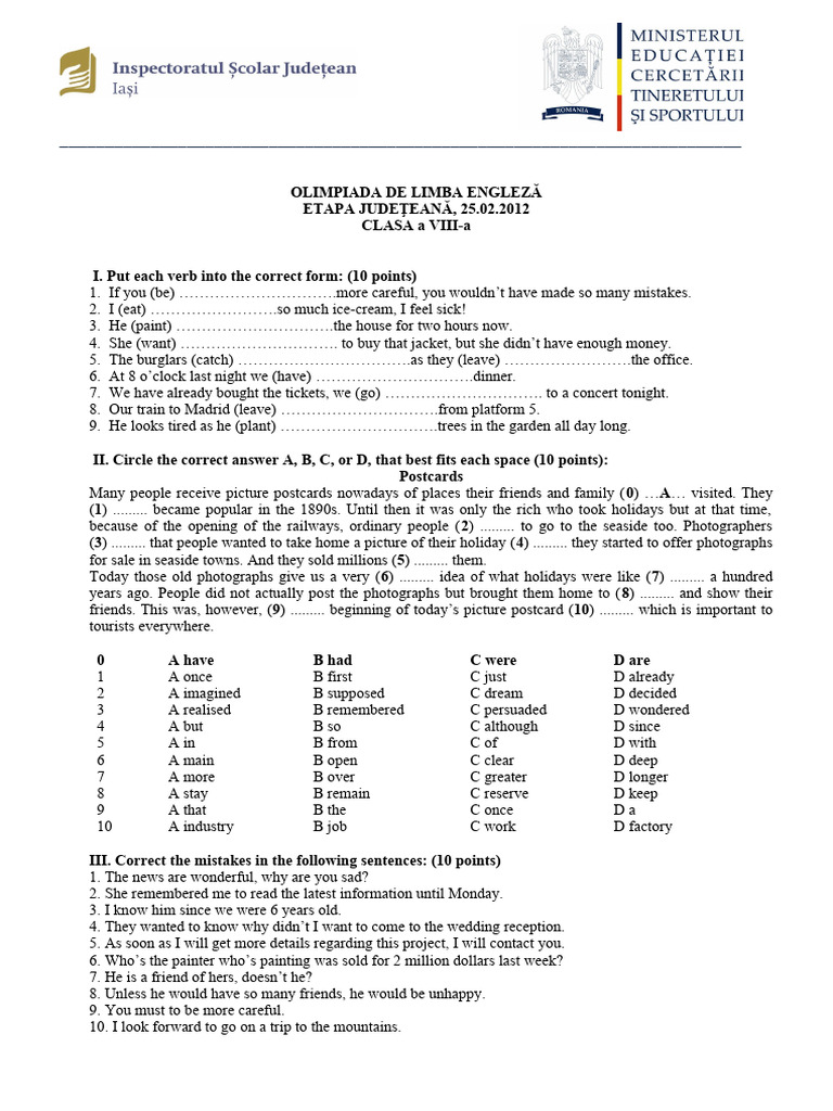 OLIMPIADA DE LIMBA ENGLEZĂ