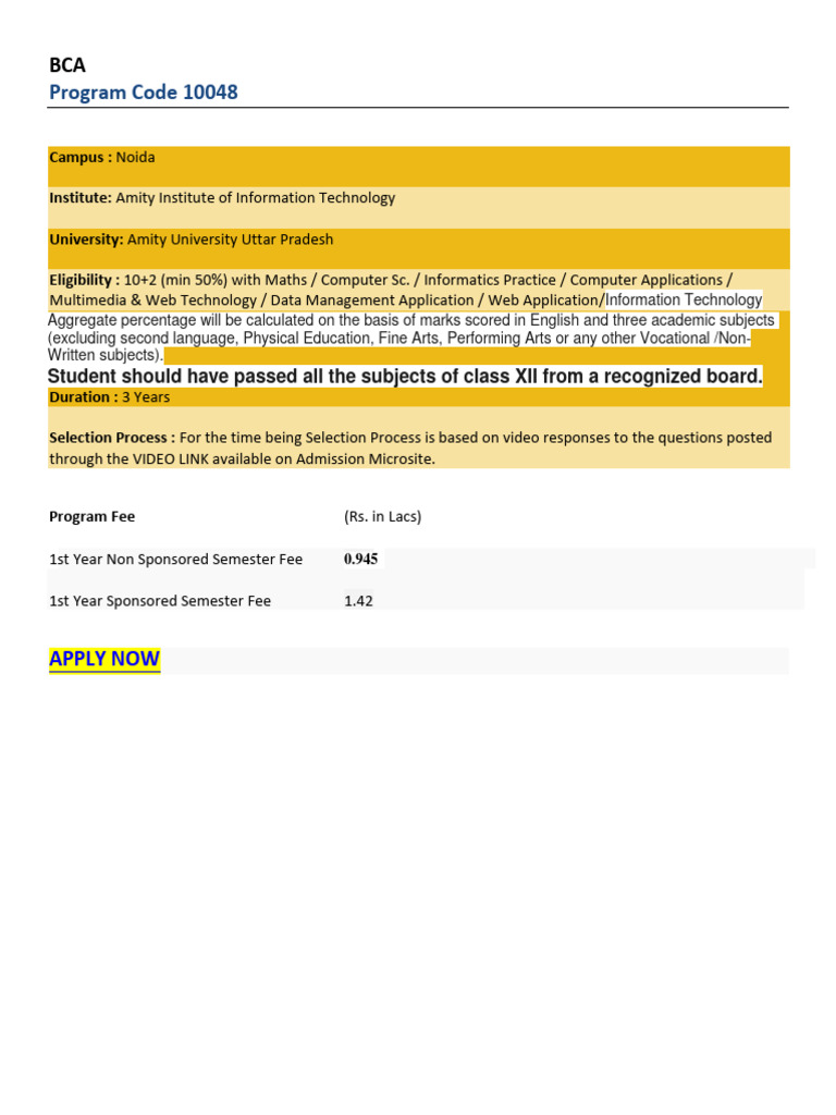 Eligibility : 10+2 (min 50%) with Maths / Computer Sc. / Informatics Practice / Computer Applications /