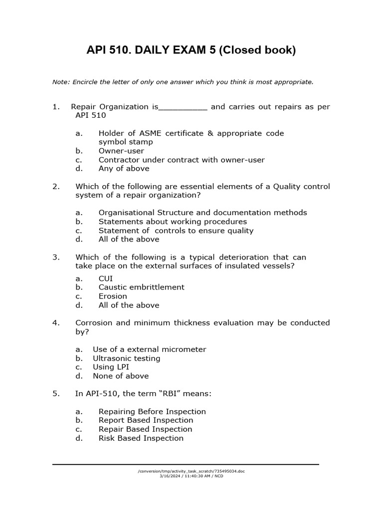 Note: Encircle the letter of only one answer which you think is most appropriate.