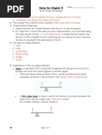 and resistance force; (2) from the lengths of the lever arms, and; (3) from the distance over which