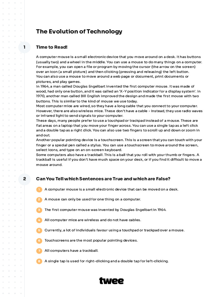 2 False - This statement contradicts the text - a mouse can be used for multiple