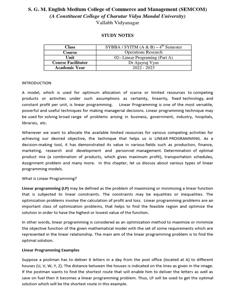 Unit 02– Linear Programing (Part A)