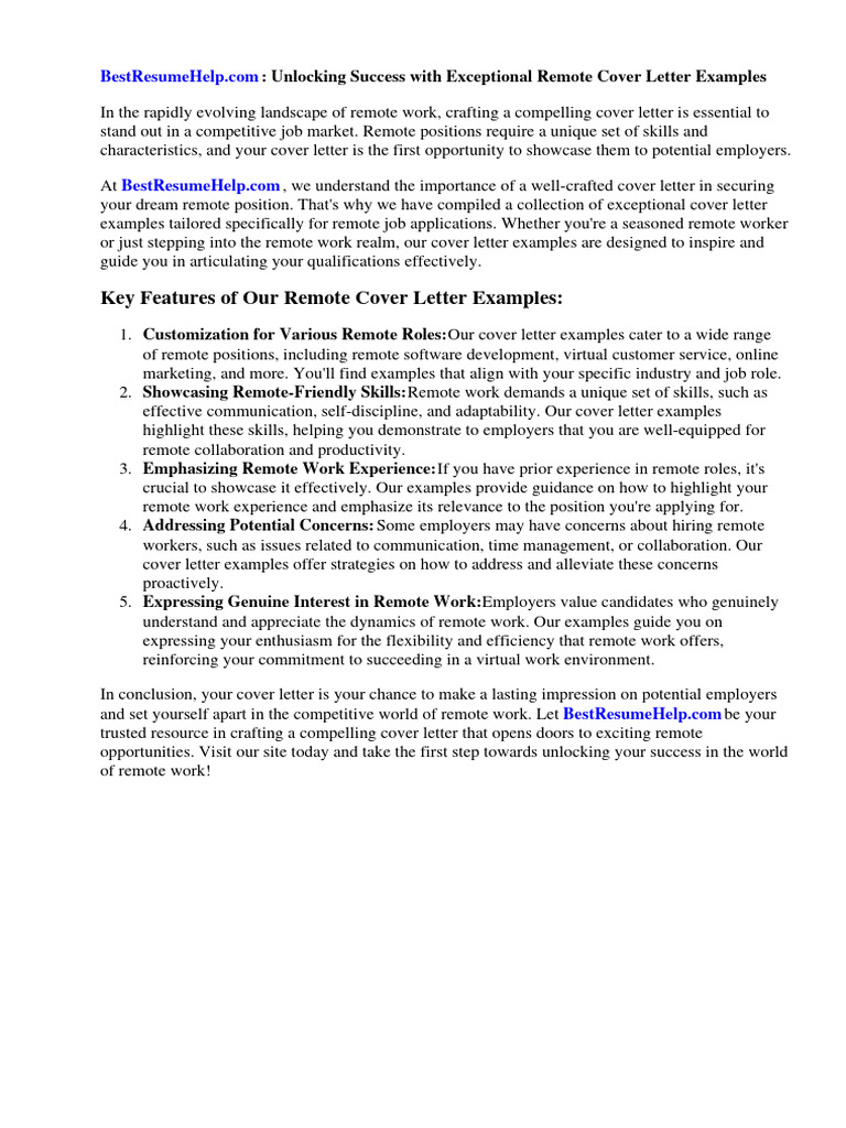com : Unlocking Success with Exceptional Remote Cover Letter Examples