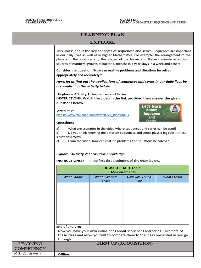 GRADE LEVEL: 10 LESSON 2: GEOMETRIC SEQUENCE AND SERIES