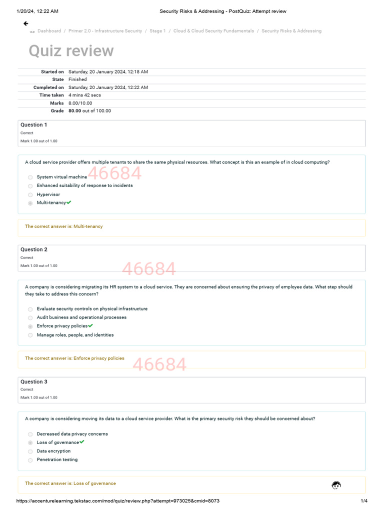 1/20/24, 12:22 AM Security Risks & Addressing - PostQuiz: Attempt review