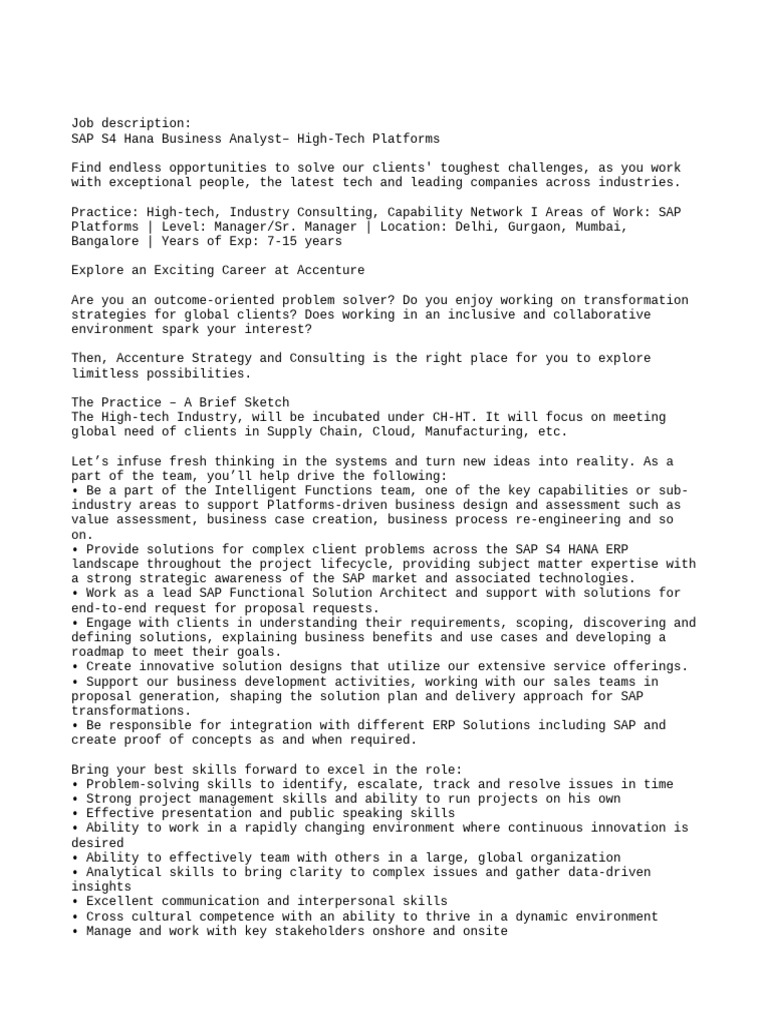 Practice: High-tech, Industry Consulting, Capability Network I Areas of Work: SAP