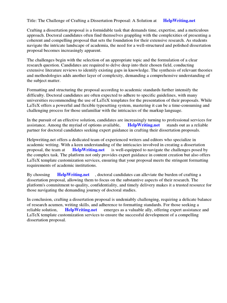 Title: The Challenge of Crafting a Dissertation Proposal: A Solution at ⇒ HelpWriting.
