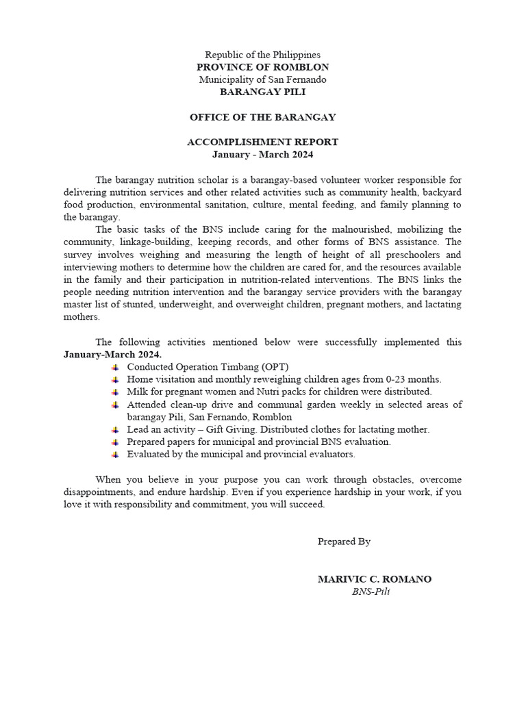 The barangay nutrition scholar is a barangay-based volunteer worker responsible for