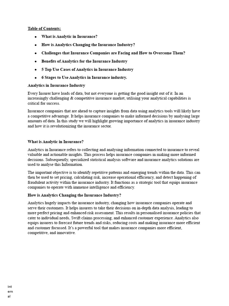 Analytics in Insurance refers to collecting and analysing information connected to insurance to reveal