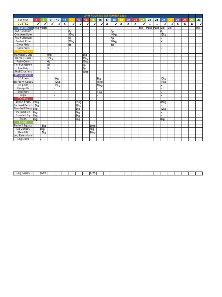 GYM ROUTINE SEPTEMBER 2023
