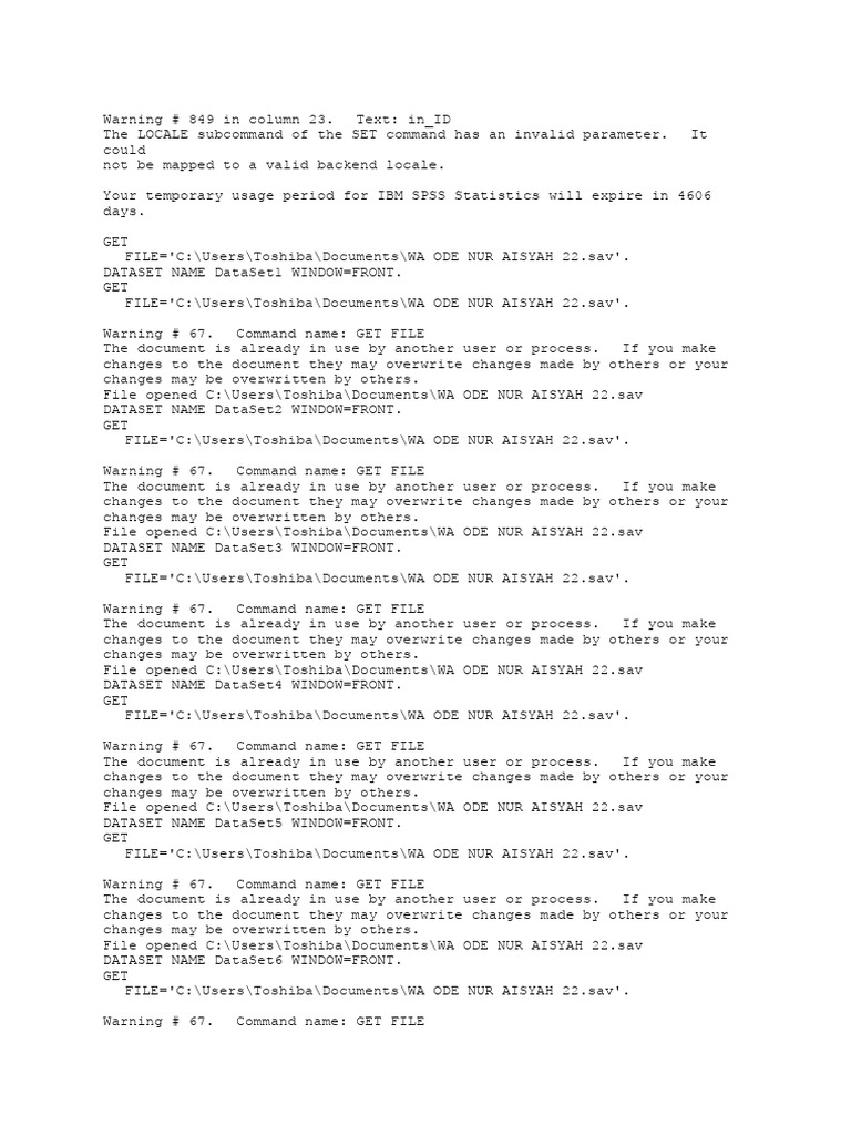 FILE='C:\Users\Toshiba\Documents\WA ODE NUR AISYAH 22.sav'.