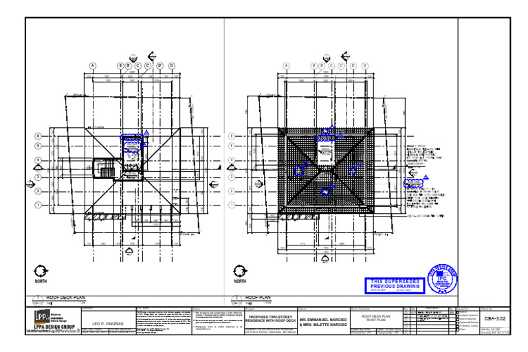 whether executed partly or in whole, without the written consent of LPPA. This 2. Do not scale this drawing and verify actual dimensions on site RESIDENCE WITH ROOF DECK MR. EMMANUEL NARCISO ROOF PLAN Owner's Instruction CBA-3.02
