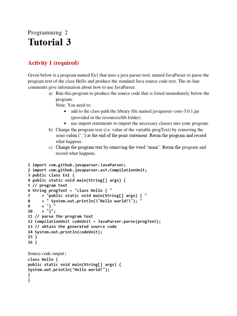 Given below is a program named Ex1 that uses a java parser tool, named JavaParser to parse the