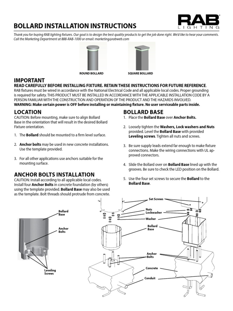 BOLLARD INSTALLATION INSTRUCTIONS