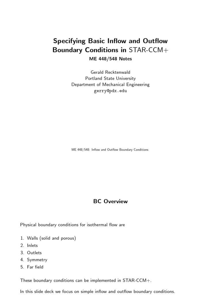 ME 448/548: Inflow and Outflow Boundary Conditions page 1