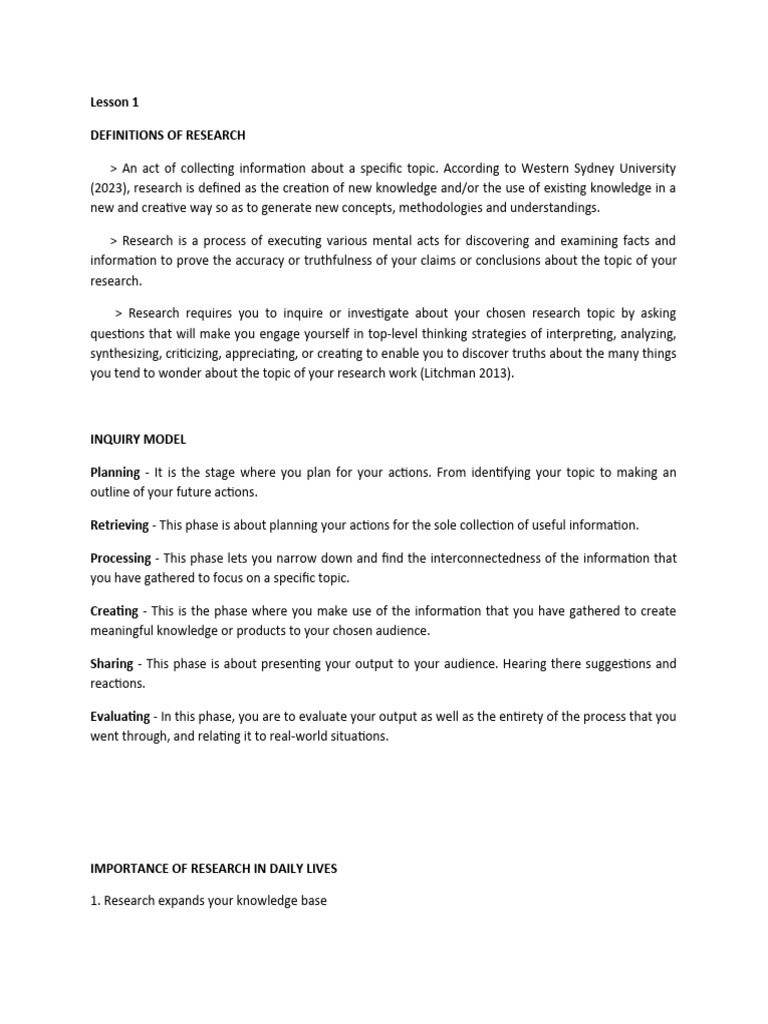 > Research requires you to inquire or investigate about your chosen research topic by asking