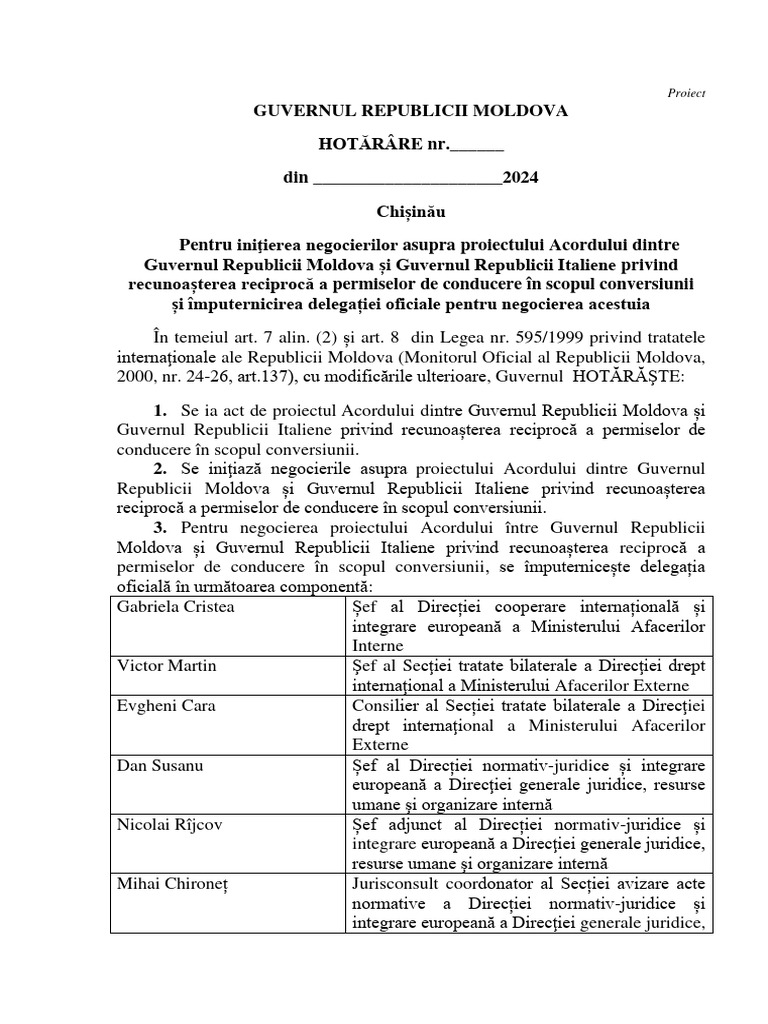 3. Pentru negocierea proiectului Acordului între Guvernul Republicii