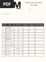 This sign off sheet is used for daily cleaning tasks in multiple locations including the kitchen, toilet, warehouse floor, and loading area. Staff members sign and date the sheet to confirm they have completed cleaning duties in those areas. The sheet tracks who performed cleaning tasks on any given date and time to ensure all areas are properly maintained each day.