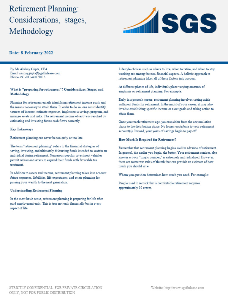 Phone +91-011-40071013 retirement planning takes all of these factors into account.