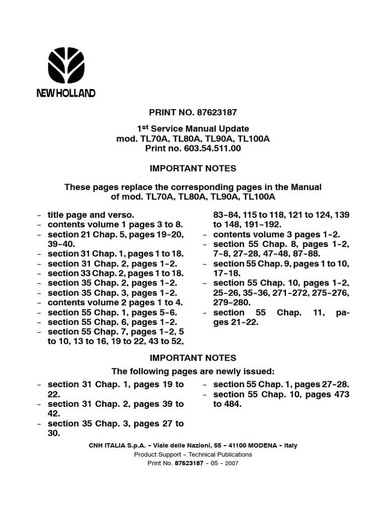 ◊ The information contained in this manual was current on the date printed on each section. As NEW HOLLAND