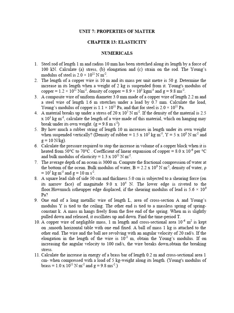13. Young’s modulus of steel and copper are 2.0 x 1011 and 1.2 x 1011 N/m-2 respectively. (i)