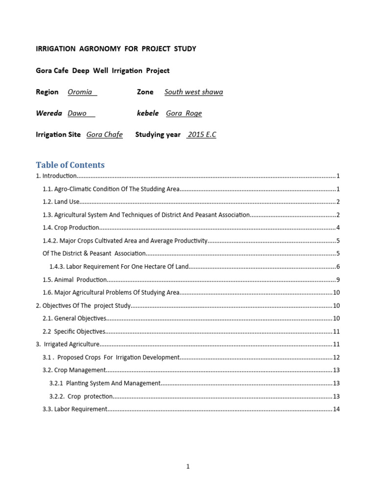1.3. Agricultural System And Techniques of District And Peasant Association..................................................2
